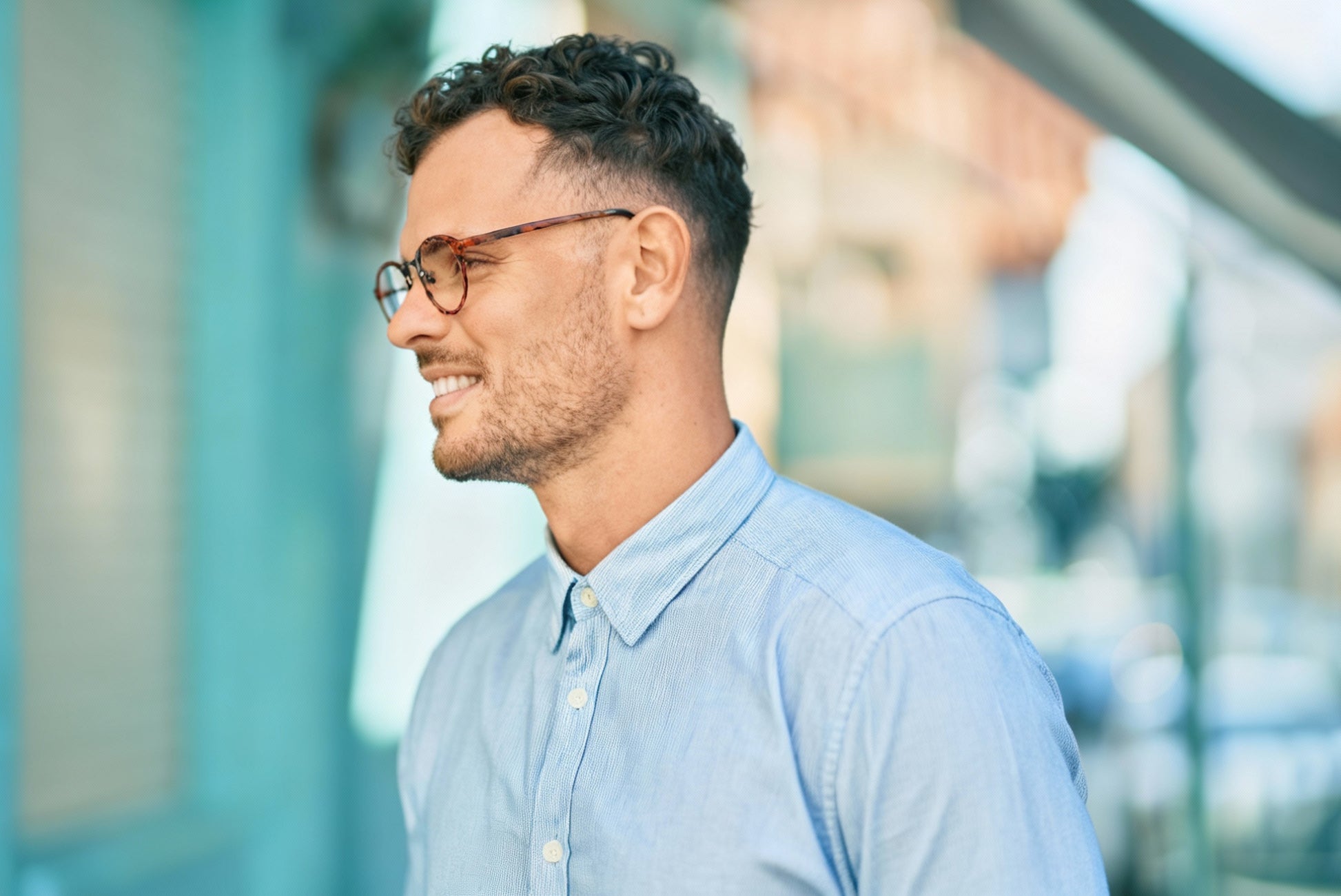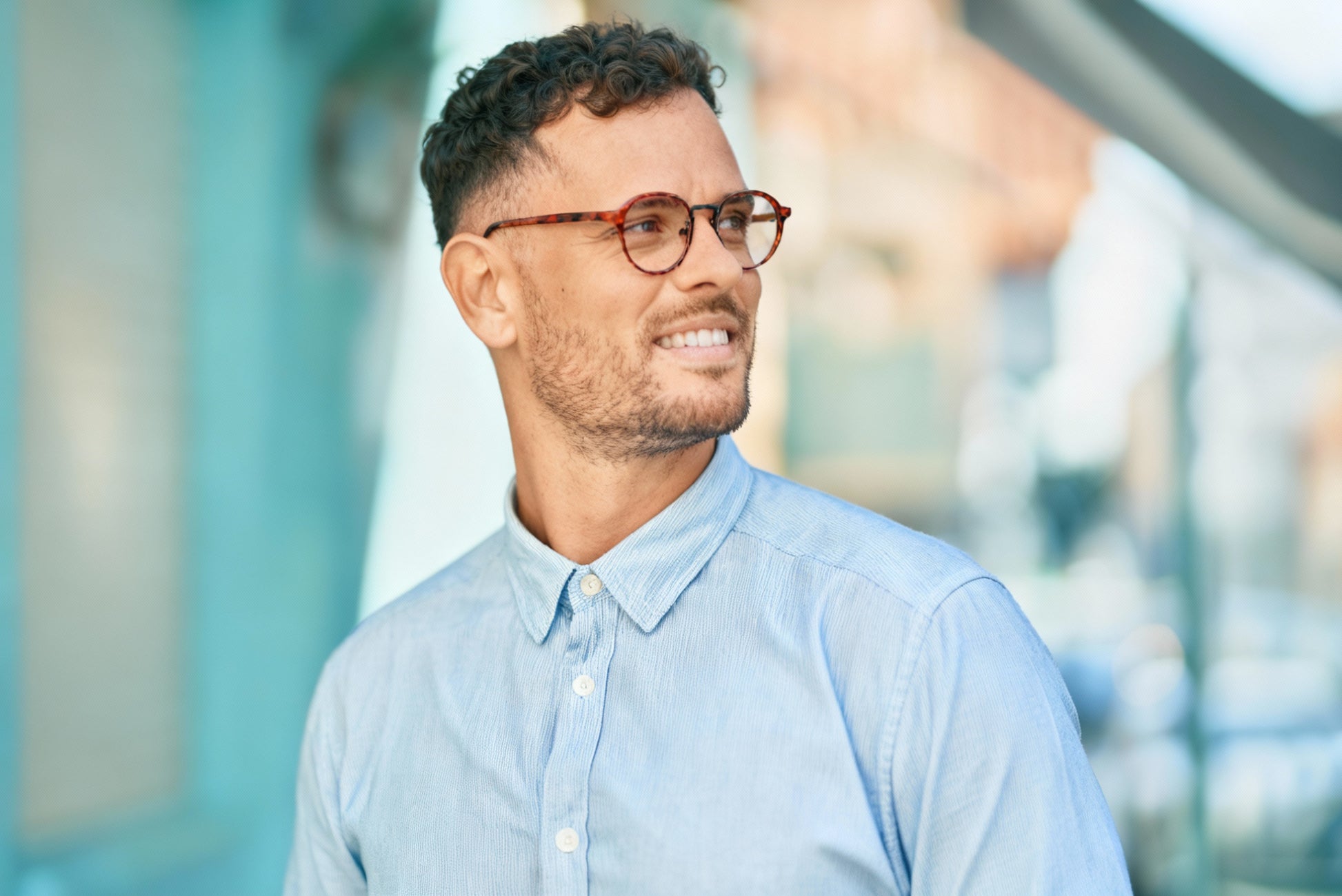 Les lunettes rondes, comme celles de la photo, ont une monture fine en métal qui dessine un cercle presque parfait autour de chaque œil. La ligne est délicate, légère, avec un pont discret qui relie les deux verres et des branches fines qui gardent le visage bien dégagé. Résultat : on voit d’abord le regard, ensuite seulement la monture.
